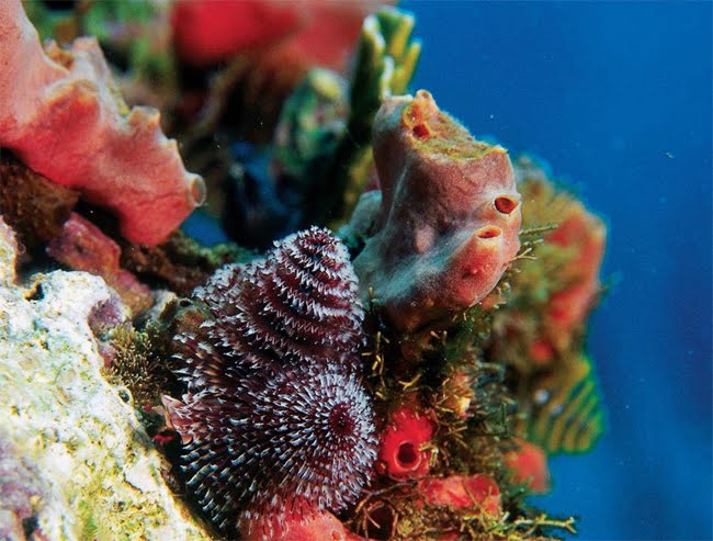 Здесь преобладают мягкие коралы Элкнорн и Стагхорн, медленно в такт повторяют движение воды. Но не только коралловые создают праздничную атмосферу, но и разнообразные рыбы, ракообразные, крабы, осьминоги, креветки, моллюски, настоящий рай для любителей дайвинга.