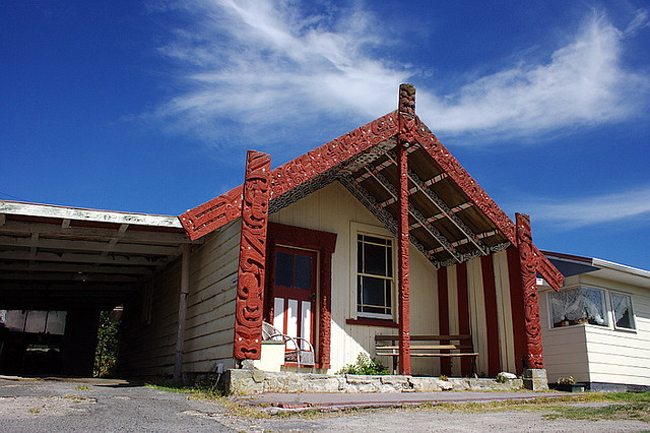Здесь можно увидеть образцы маорийских здания, самое главное, по значимости, Дом Собраний маори, представляющие собой строения, с резными столбами упирающимися в землю, резными наличниками, символизирующие руки предков. Коньковый брус символизирует позвоночник племени, а стропила - ребра фамильного рода.
