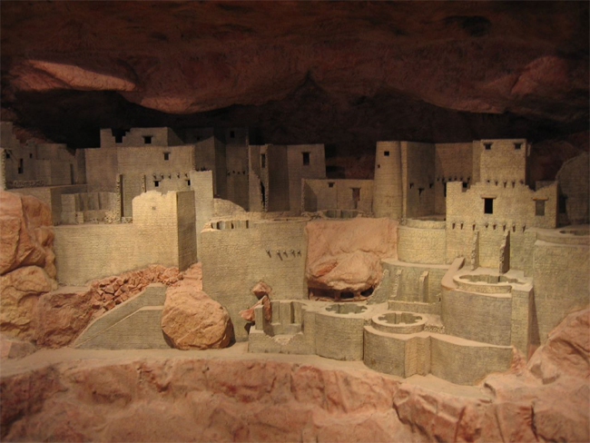 Здесь же останки города, представлявшего собой лабиринтообразную систему глинобитных построек, толщина стен в которых достигала 1,5 м., а так жен найдены пятиэтажные дома, в которых были предусмотрены обогревательные печи, кровати, представляющие собой ниши в стене. Особый интерес представляли собой дверные проемы, имеющие Т-образную форму, то ли для пущей безопасности, то ли для обеспечения устойчивости постройки, доподлинно не известно.