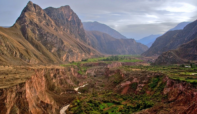 Захватывающее по красоте зрелище открывается в самом сердце перуанских Альп, словно разорванная гигантами, плоть земли, теряется где-то на глубине 3-ех километров, создавая впечатление бездонности расселины. Убаюкивающий, плавный полет кондоров, скупая альпийская растительность и высоченные вершины, величаво обрамляют, своими заснеженными шапками, застывшую в оцепенении долину.