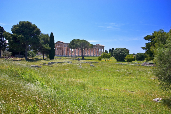 Сибарийская колония, часть Великой Греции, напоминающая о греческом присутствии на Апеннинах. Заселенная еще с времен неолита местность, после прихода греческих колонистов, превратилась во влиятельный город Посидония, примерно в VI веке до нашей эры. Дошедшие руины храмов посвященных Афине и Гере, впечатляют свой красотой и грандиозностью. Настоящей жемчужиной стала "Гробница ныряльщика", с сохранившимися до наших дней, изумительными по красоте произведениями греческого фрескового искусства.
