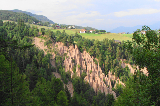В Доломитовых Альпах, близ городка Брунико в Южном Тироле, находится уникальное место, плато пирамид созданных природой во времена ледникового периода. Уникальные творения природы, созданы творцом из морены, перенесенных или отложенных рыхлых горных пород, которые постоянно находятся в движении, в результате эрозии земли. В результате чего пирамиды постоянно меняются, особенно в зимний и весенний период.