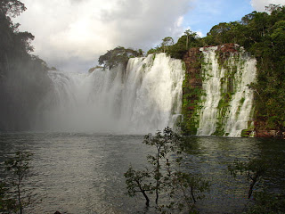 Захватывающее зрелище открывается взору путешественника, на фоне красных сказ, обрушивается толща пенящийся воды и с оглушающим рокотом низвергается до следующего уровня, где буквально в нескольких метрах успокаиваемый до идиллии.