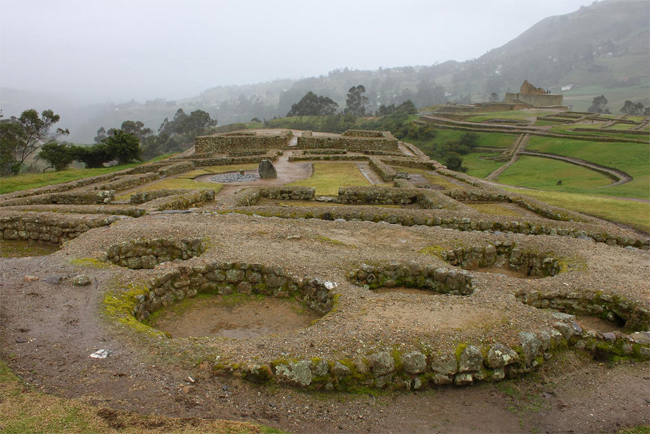 Центральное место в городе занимал храм Солнца, эллиптическое здание, окруженное каменной стеной. Оно было построено так, чтобы в момент дневного солнцестояния, солнечные лучи проникали через дверь в стене и попадали в эллиптическую камеру, руины которой дошли до наших дней. Так же можно увидеть руины жилых зданий, площадь, эллиптической формы, для проведения ритуальных действ. А так же руины винного завода и останки мастерских ремесленников.