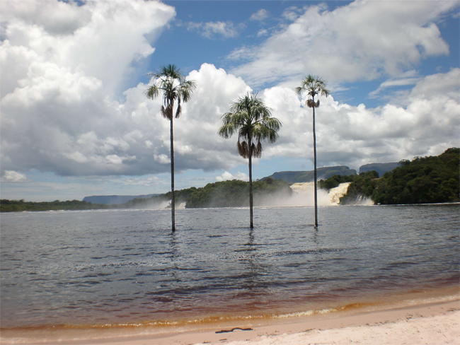 Одним из самых красивых мест парка является Лагуна Канайма, которую питают несколько небольших водопадов, с окрестных тепуи. Необычный цвет воды и песка, придают пейзажу нереальную красоту. Из-за обилия полезных ископаемых, вода принимает красный цвет, а песок имеет красивый розовый, из-за наличия кварца.