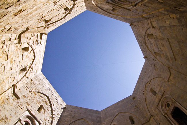 До сих пор нет единого мнения о предназначении этого великолепного строения, построенного по повелению императора Фридриха II в XIII веке. Величественный замок, имеющий форму правильного восьмиугольника и построенный из известняка, который придает зданию цвет разных оттенков, в зависимости от освещенности, от белого до розового, не имеет внутренних элементов, использовавшихся в оборонительных целях, помимо этого отсутствие рва, а так же не стратегическое расположение, приводит к выводу о не военном предназначении строения.
