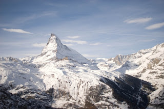 Пик Маттерхорн, не самая высокая вершина в Швейцарии (4478 м), однако ей нет равных, с точки зрения сложности, альпинистских восхождений. Маттерхорн расположен на границе Швейцарии и Италии, итальянское название Червино, имеет форму правильной пирамиды и очень красива, недаром ее избрали одним из национальных символов Швейцарии. Четыре ребра образуют эту идеальную, природную пирамиду с довольно пологим, восьмидесятиметровым горизонтальным гребнем.