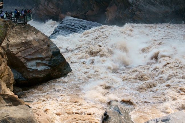 Ущелье тянется на протяжении 15 километров, условно делиться на на три части Верхнее ущелье, Среднее и Нижнее. Самым узким участком ущелья является Верхнее ущелье, здесь река Янцзы, развивает максимальную скорость, бурля и клокоча, с неимоверным грохотом разбивается о скалу, расположенную посреди русла реки, формируя множество водоворотов.