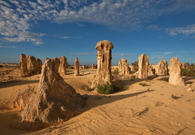 Завораживающий лунный пейзаж, поднимающихся, из совершенно пустынного ландшафта, огромных столбов и пиков из известняка, на желтом песчаном фоне. Одно из самых излюбленных мест фотографов, в Австралии, входит в состав Национального парка Намбунг.