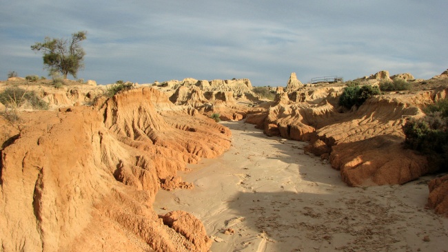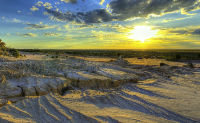 Это был своего рода рай для аборигенов, охотников и собирателей. Около 16000 лет назад, район стал более засушливым и озера высохли. Все, что сейчас можно увидить это бесплодное ложе, 25 километров песчаных дюн, называемых "лунетт" или "Китайская стена", которые протянулись вдоль края озера.