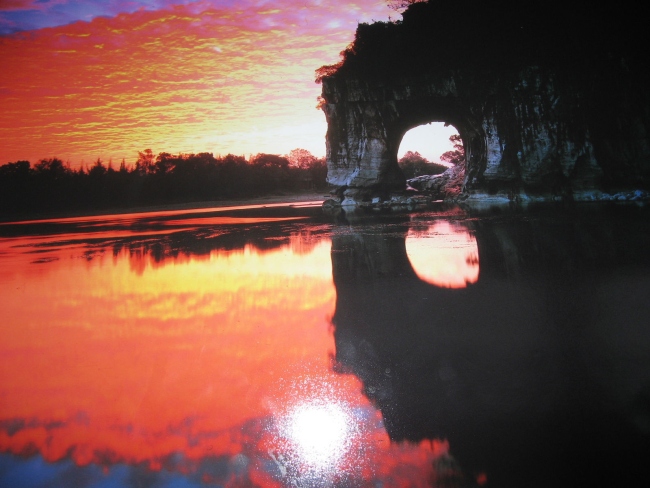 Полукруглое отверстие между хоботом и головой слона названо «Пещерой Луны». В полнолуние, когда на небосклоне появляется полная луна, круглая пещера в горе "Слонового хобота" подобна луне в струях реки, искрящейся лунным светом. А отражение самой луны в водах реки Ли создает впечатление, будто на небе две Луны. Эта завораживающая своей красотой картина вдохновило множество поэтов на начертания своих стихов на стенах пещеры.