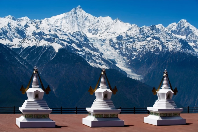 Горный хребет, величественный, древний как вечность, снежные вершины которого вздымаются ввысь небес, окутываясь в таинственную облачную дымку. Мейли Сюэ Шань с его 13-тью вершинами, высотой выше 6000 метров, самая высокая среди которых легендарная вершина Кавагебо - 6740 метров, почитающаяся одной из самых святых гор в буддизме, в составе региона ограниченного тремя параллельными реками Янцзы, Меконг и Салуин, в провинции Юньнань, в 2010 году включен в списки Всемирного наследия ЮНЕСКО.