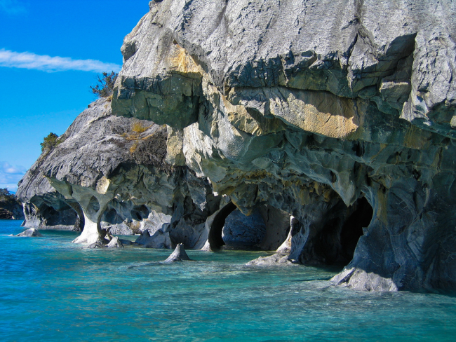 Впечатляющие лабиринт пещер в Патагонии на озере Хенераль-Каррера. Светопреставление, тысячи оттенков синего и белого цветов, усиленные отражением в бирюзовых водах озера, смешиваются внутри этих пещер. Захватывающее зрелище, мать-природа смоделировала в течение последних тысячелетий уникальный шедевр названный Мраморный собор.