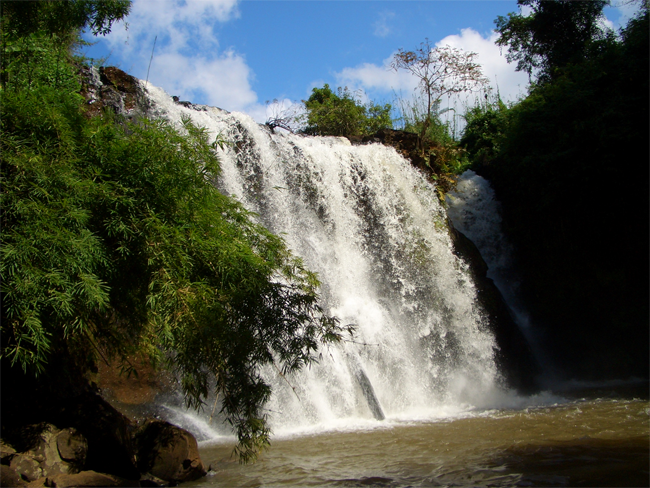 В гуще величественных деревьев и каучуковых плантаций с шумом низвергается с двенадцатиметровой высоты водопад Качань. Достигнув дна бассейна воды вдребезги разбиваются о твердыню, рождая облака тумана, временами размывающие до пастельных тонов, яркую и живописную картину окрестности.