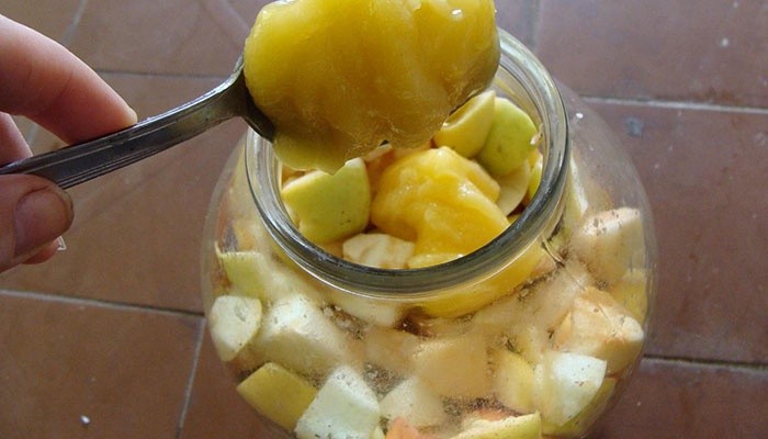 При желании сырой мед можно заменить тростниковым сахаром. Однако использование сырого меда приведет к получению самого полезного для здоровья яблочного уксуса.