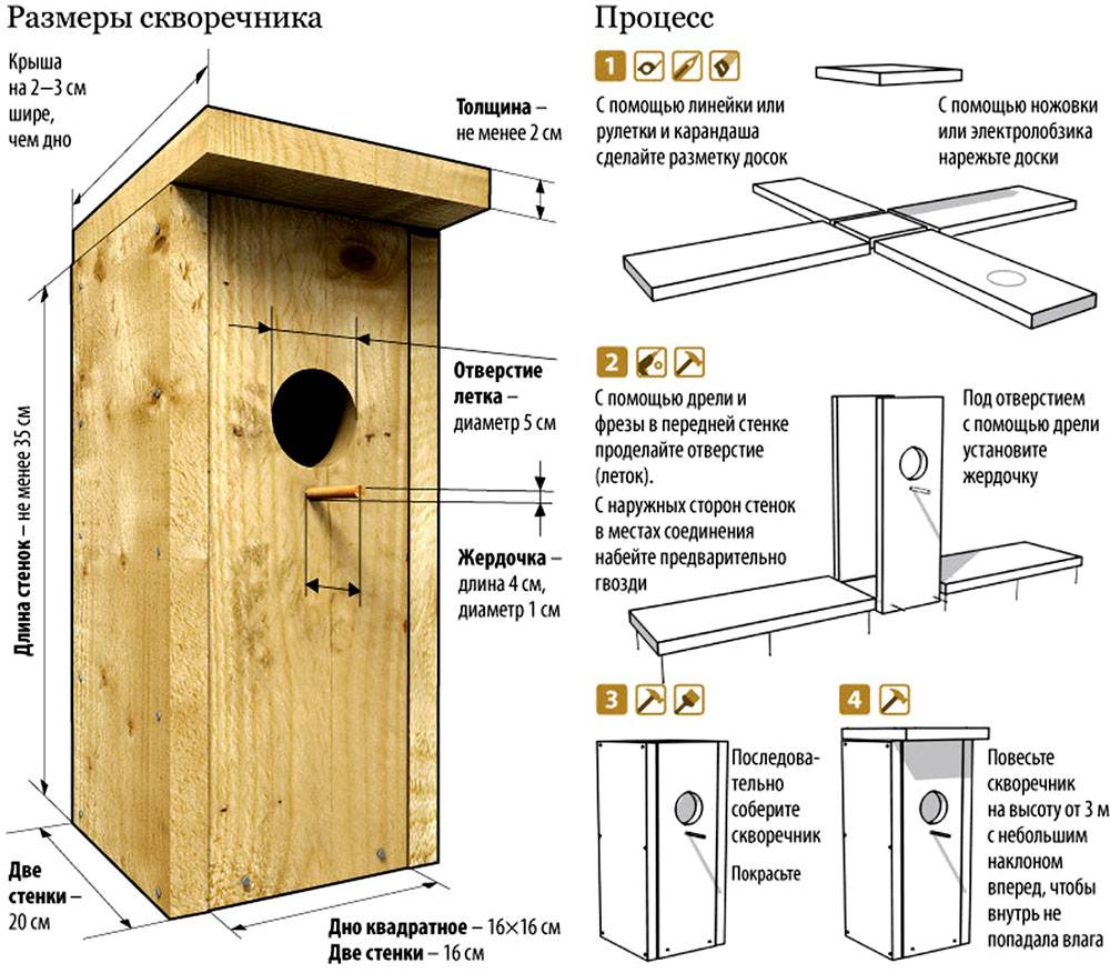 Как сделать скворечник своими руками, чертежи, схемы, идеи