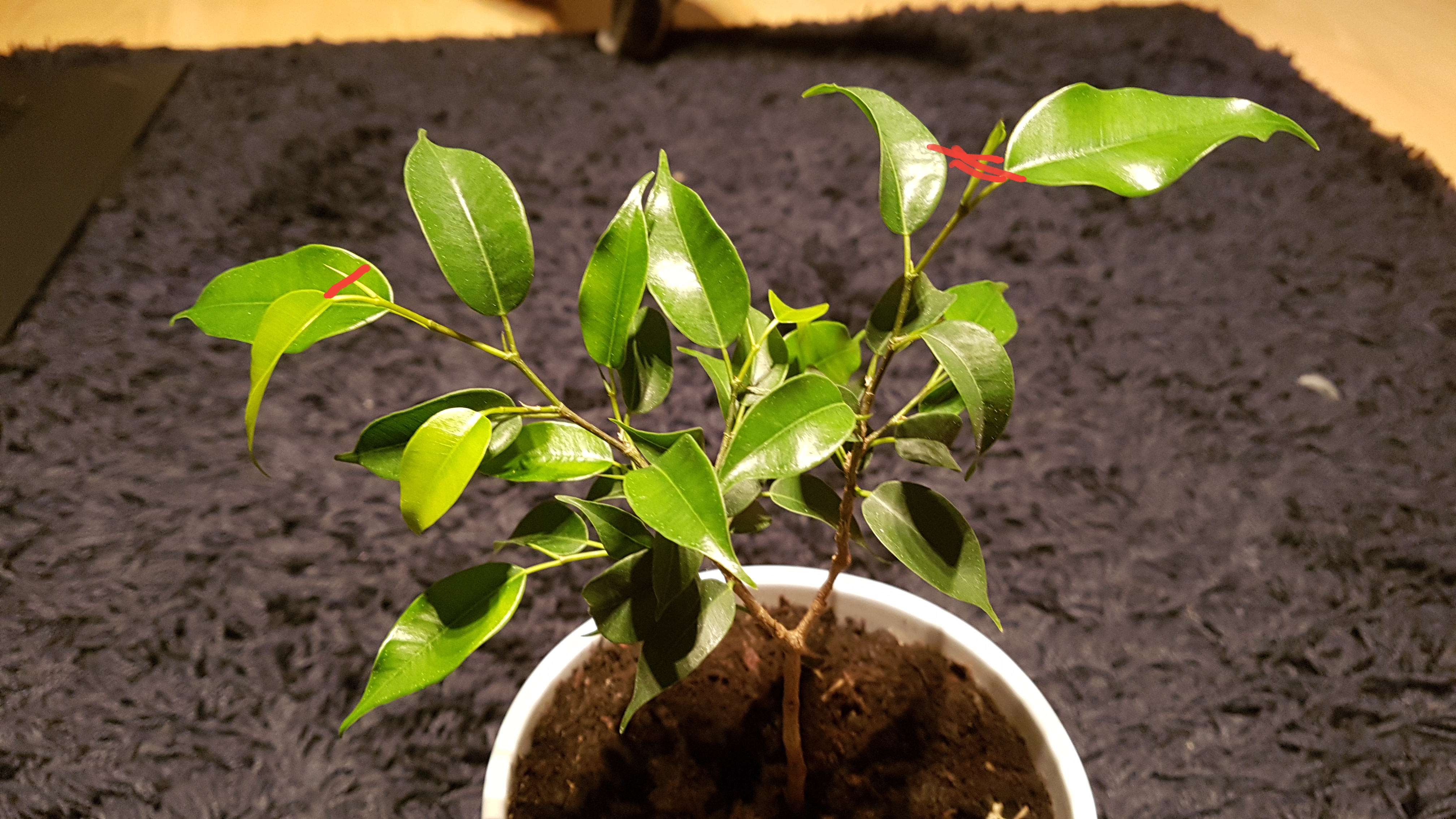 - для равномерного наращивания кроны сплетенными стволами, горшок нужно крутить вокруг своей оси, поворачивая к солнцу разными сторонами;