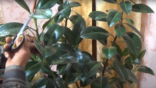Несмотря на то, что фикус Робуста вечнозеленый, срок жизни его листьев ограничен. Поэтому помимо формирующей, ему требуется и санитарная обрезка. Проводят ее по необходимости в течение всего года.