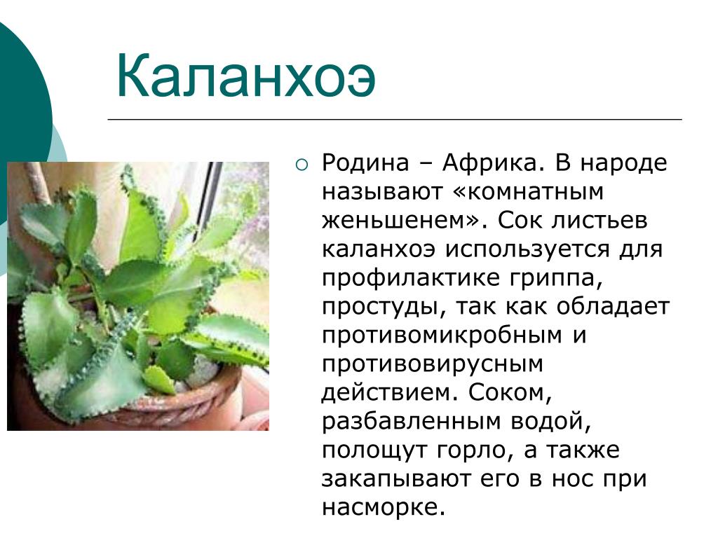 Известны целебные свойства каланхоэ, например, сок растения в народной медицине используют для избавления от насморка. Сильное чихание после закапывания — нормальное явление, пугаться не стоит.