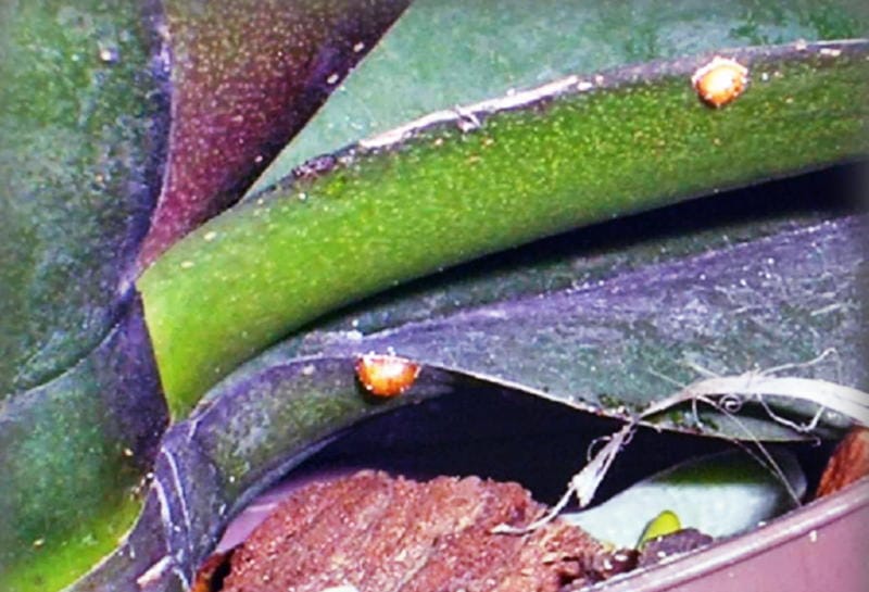Рис. 9-3. Чешуя — очень распространенный вредитель орхидей.