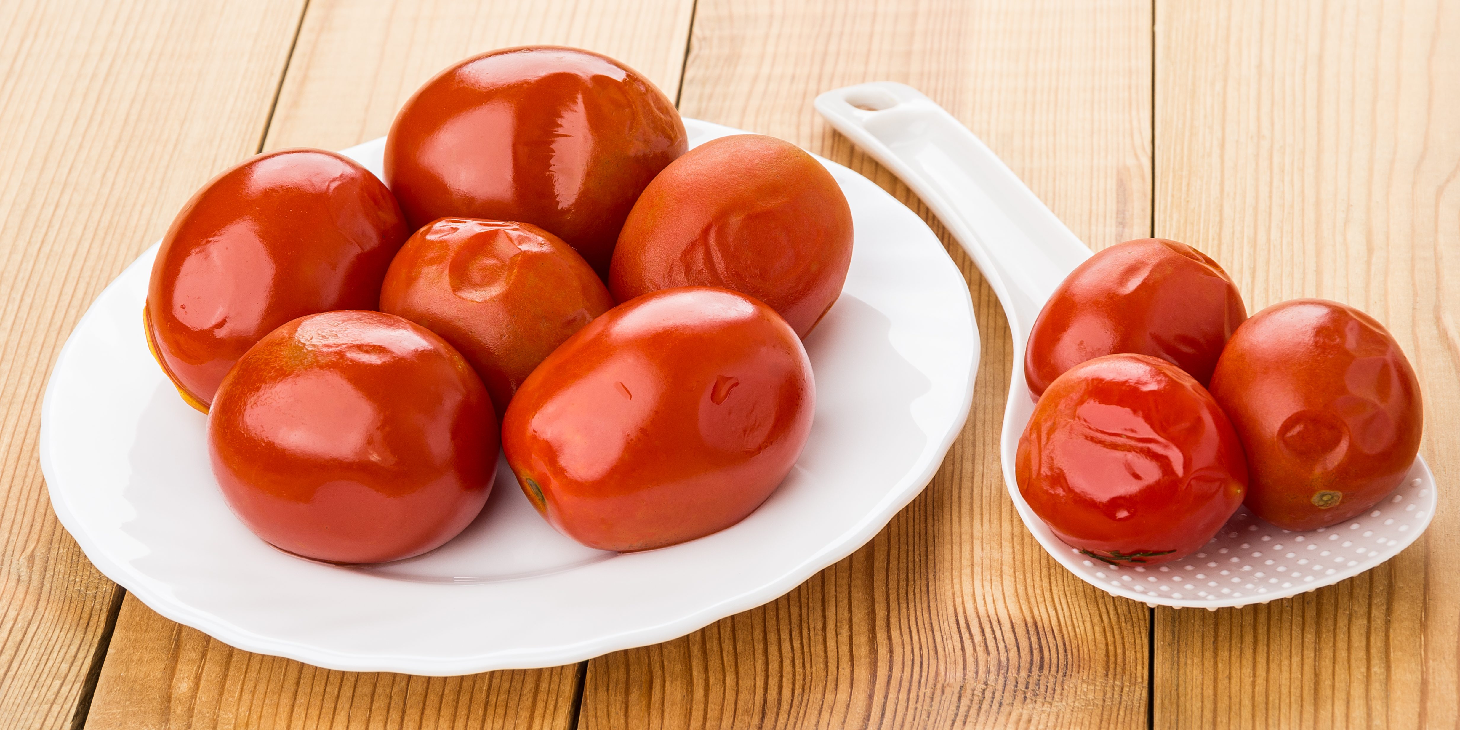 Снимите с отобранных подготовленных краных помидоров кожицу. Для этого положите их в дуршлаг и на 1–2 мин. опустите в кипяток, затем быстро погрузите на 2–3 мин. в холодную воду – кожица легко снимется.