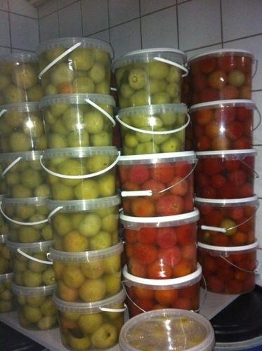 Подберите красные или зелёные помидоры, плотные и одинаковые по размерам, промойте и уложите в банки. Залейте кипящим рассолом (на 1 л воды – 35 г поваренной соли и 6 г лимонной кислоты). Банки прикройте крышками и поставьте на прогревание, выдерживая в кипящей воде: литровые – 5–8 мин., трехлитровые – 15 мин. Затем укупорьте и охладите.