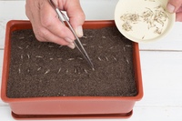 Сухие или предварительно замоченные семена сеют на расстоянии 3-5 см друг от друга, затем слегка присыпают торфом и уплотняют. Если температура воздуха днем не опускается ниже 18°С, уже через неделю появляются всходы.