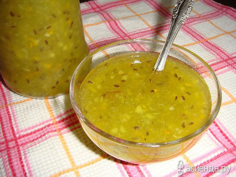 Вот рецепт еще одного необычного лакомства с южными фруктами. Даже пара ложек сладкого лакомства придаст сил и поднимет настроение. Поэтому обязательно запаситесь ею на зиму, чтобы даже в самый холодный день окунуться в воспоминания о лете.
