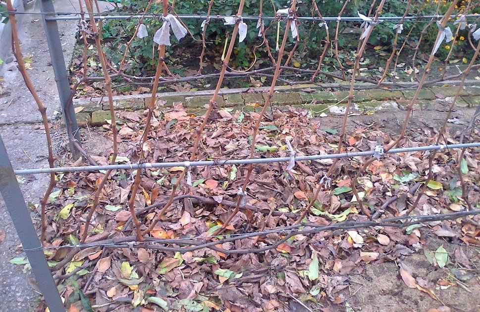 Высаживать такую лиану осенью можно с первых дней октября и до замерзания почвы. Сама процедура посадки саженца ничем не отличается от весенней, кроме того, что его нужно будет подготовить к зимовке. Для этого надо произвести высокое окучивание винограда и укрытие его хвоей. Поверхность приствольного круга при этом надо укрыть слоем торфа либо опилок. В только что сделанную яму высаживать саженец не рекомендуется, поэтому ее следует подготовить за 14–20 суток до высадки. Дело в том, что когда почва начнет оседать, то она травмирует корневую систему саженца, а его утащит за собой.