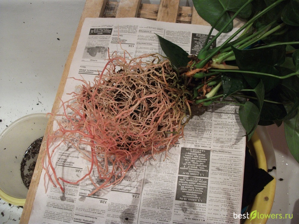 Освобождать от земли корневую систему необходимо только у проблемных антуриумов или если он рос в неправильно подобранной почвенной смеси.