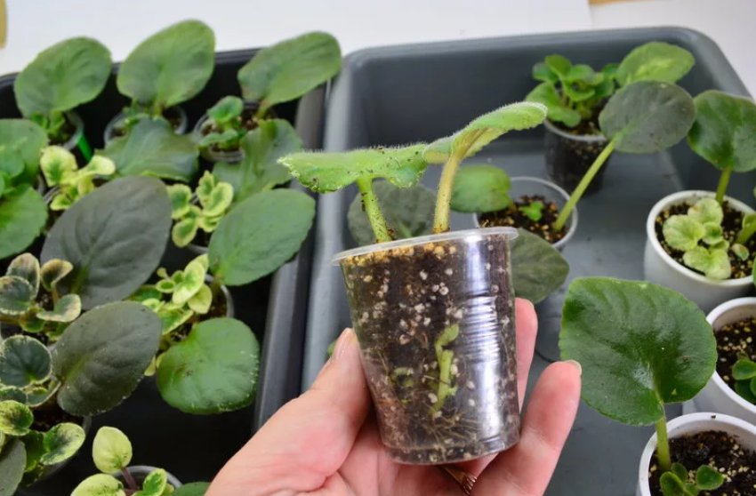 В плане пересадки особое внимание стоит уделить молодым сенполиям, которые стремительно растут. Явными признаками того, что цветку пора сменить горшок, являются «вываливающиеся» из него листья и торчащие корни из отверстия для слива воды. В этом случае стоит сделать перевалку сенполии в более объёмную ёмкость. Важно максимально сохранить форму корней и избежать потери родного грунта — тогда растению будет легче привыкнуть к новой среде обитания.