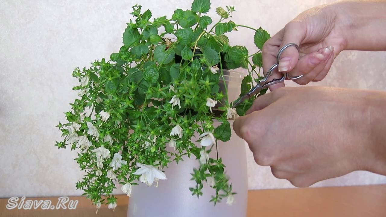 Когда наступают короткие осенние дни и активный рост кампанулы прекращается, ее стебли обрезают, а само растение переносят в прохладное помещение, где оно будет накапливать силы для цветения в следующем сезоне.
